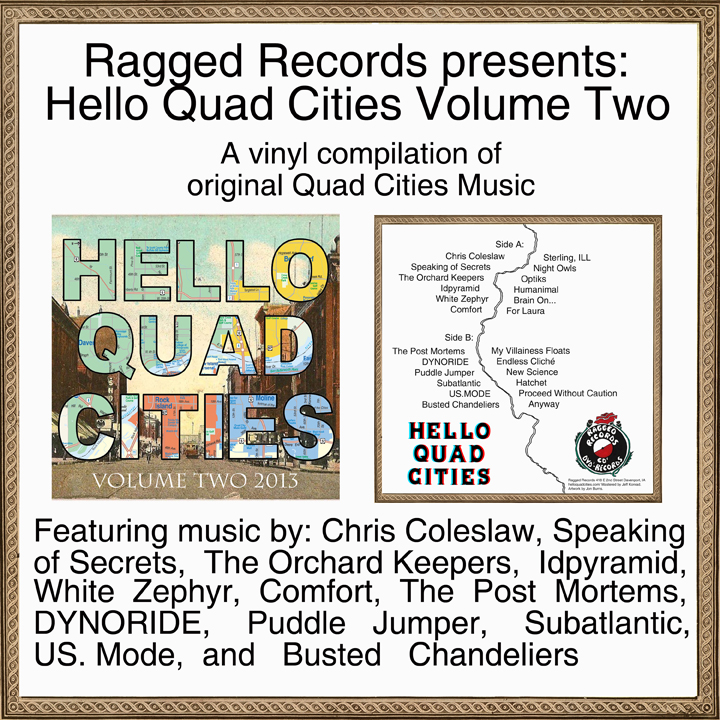 Hello Quad Cities joins the excitement of Record Store Day 2013 @ Ragged Records. Hello Quad Cities Vol. 2 will be released as part of RSD 2013. Visit Ragged Records on April 20th to pick up a copy of the areas only VINLY compilation of QC music… a must for any local collector. There will also be performances from Hello Quad Cities bands: IDPYRAMID, SPEAKING OF SECRETS, BUSTED CHANDELIERS, PUDDLE JUMPER, & THE POST MORTEMS.